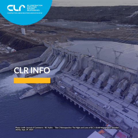 The latest CLR INFO is out: inside, you’ll find updates on B.C.’s Prompt Payment legislation, Metro Vancouver’s $6B plant redesign, new housing in Vancouver, and the Site C dam reaching full operation.